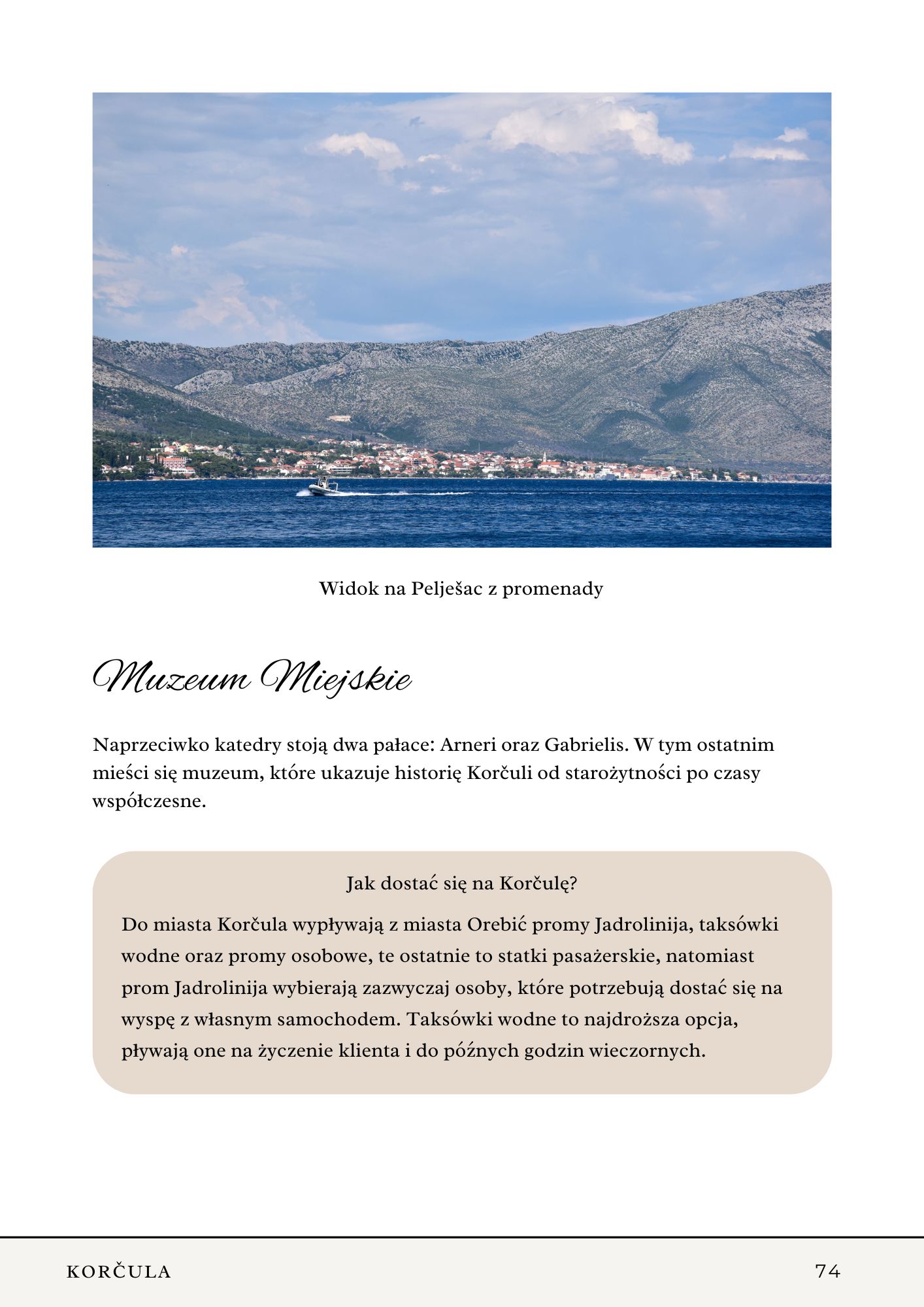 Z przewodnika po Chorwacji południowej dowiesz się, gdzie są najlepsze plaże i restauracje, jak podróżować po Chorwacji bez samochodu, ile dni przeznaczyć na konkretne miasto, gdzie i jakie wino kupić oraz jakich potraw spróbować. Otrzymasz interaktywną mapę, z którą na pewno nie pominiesz żadnego miejsca. Pokaże Tobie, gdzie w Chorwacji południowej kręcono Grę o Tron oraz gdzie są najlepsze punkty widokowe. Jeśli lubisz chodzić po górach, to mam dla Ciebie trasę, której nie zapomnisz do końca życia. Dodatkowo poznasz historię miast oraz najpiękniejsze zabytki.